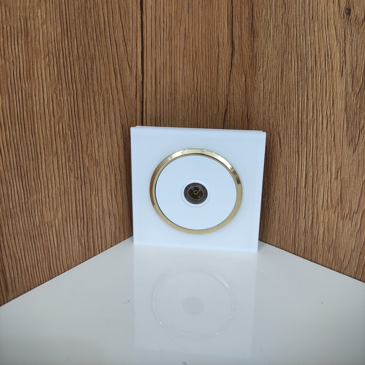 خانه کلید و پریز پریز آنتن ایران مدل اسپادانا (پلکسی سفید زه طلایی میانی سفید)