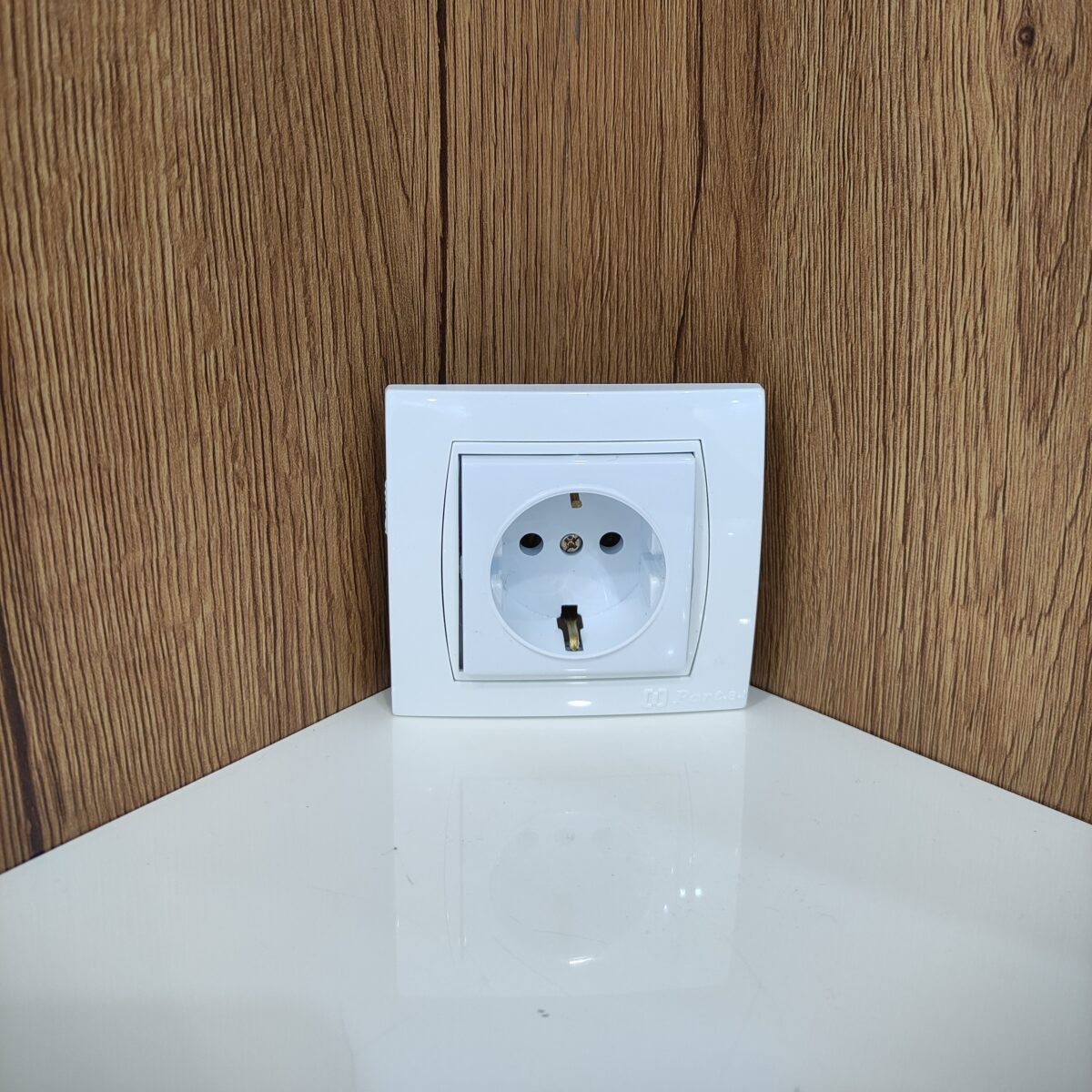 خانه کلید و پریز پریز برق ارت دار با مغزی سرامیکی پارت با قاب آذین سفید