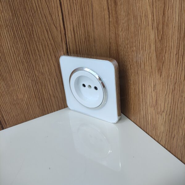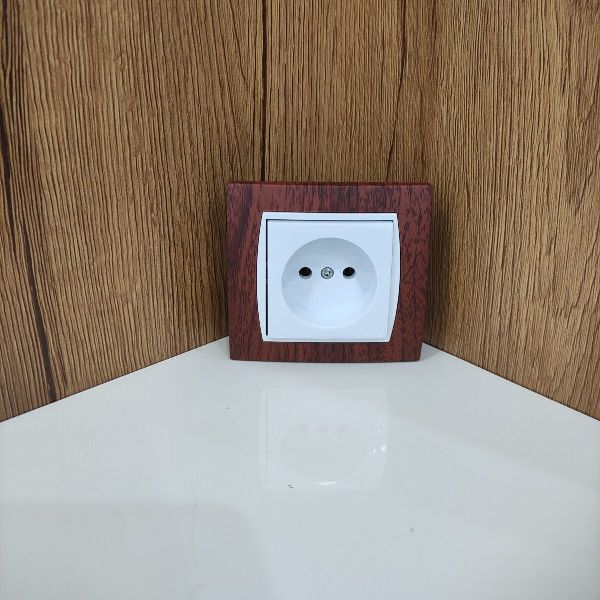 خانه کلید و پریز پریز برق با مغزی سرامیکی پارت با قاب آذین طرح چوب