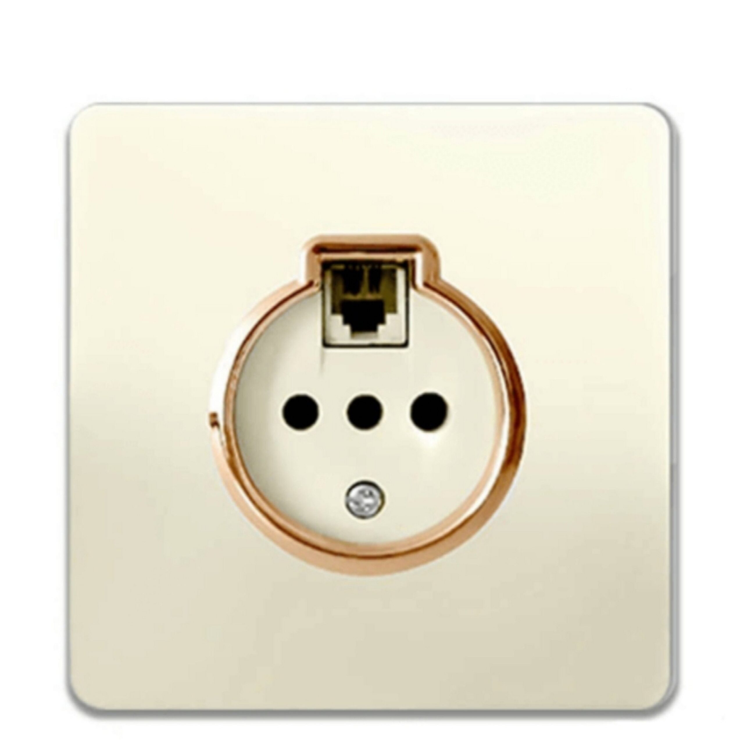خانه کلید و پریز پریز تلفن دومنظوره آسیا الکتریک مدل کریستال (قاب دور کرم میانی طلایی)