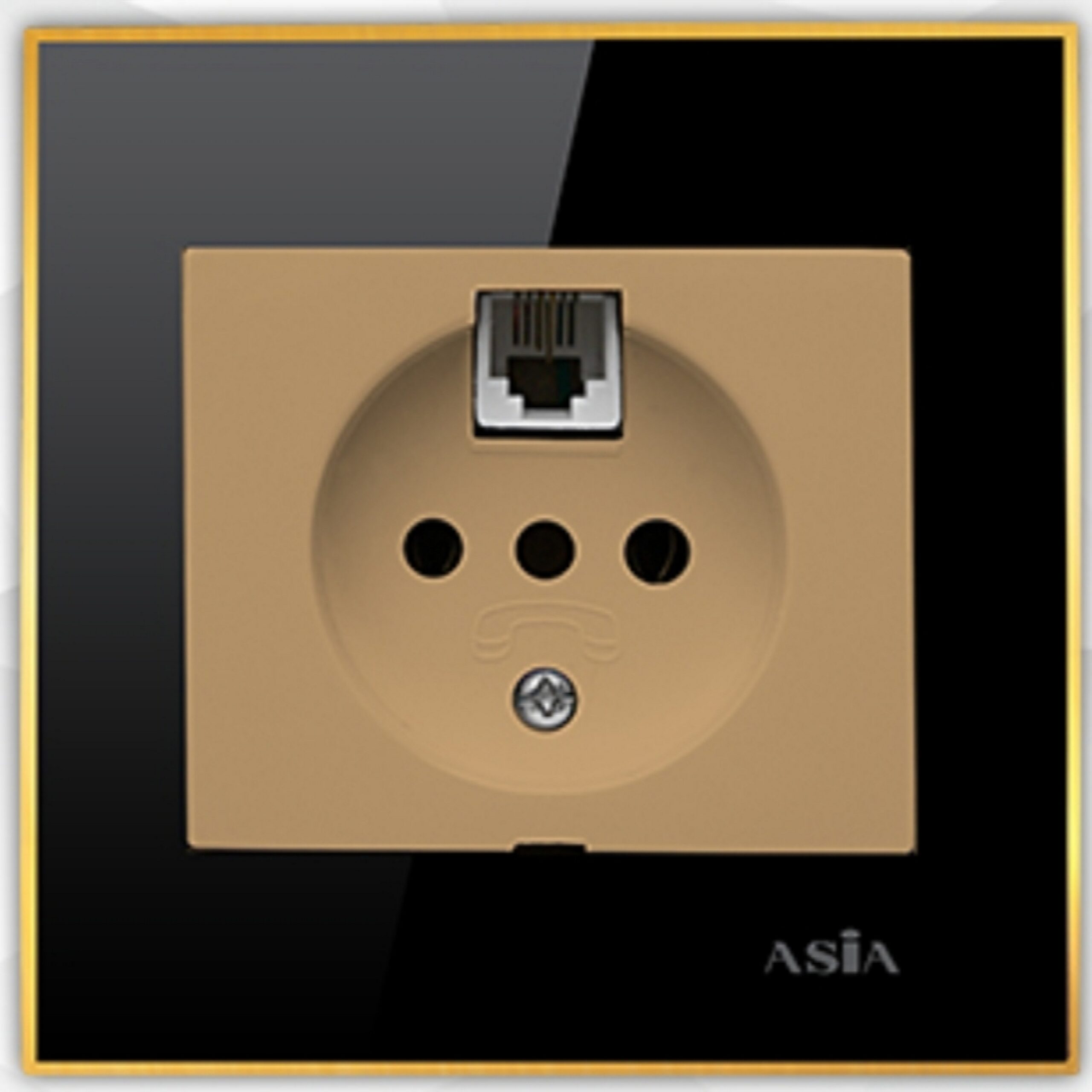 خانه کلید و پریز پریز تلفن دو منظوره آسیا الکتریک مدل نگین مشکی