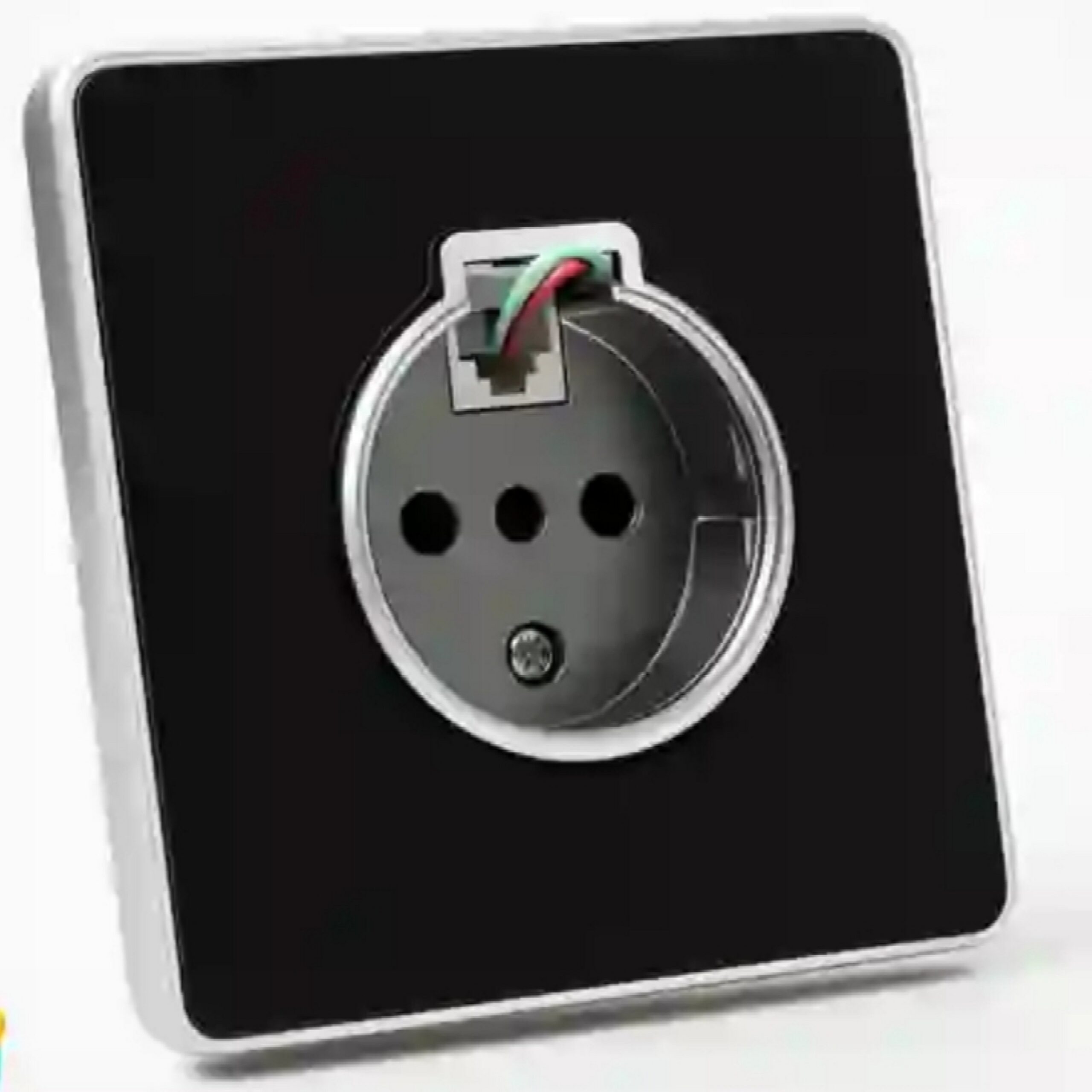 خانه کلید و پریز پریز تلفن دو منظوره آسیا الکتریک مدل یاقوت (قاب دور مشکی میانی نقره ای)