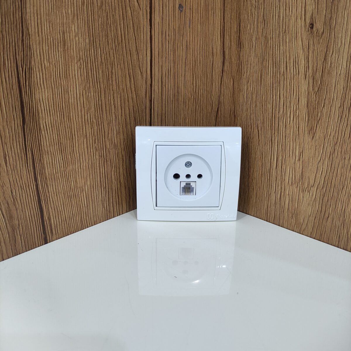 خانه کلید و پریز پریز تلفن دو منظوره پارت با قاب آذین سفید