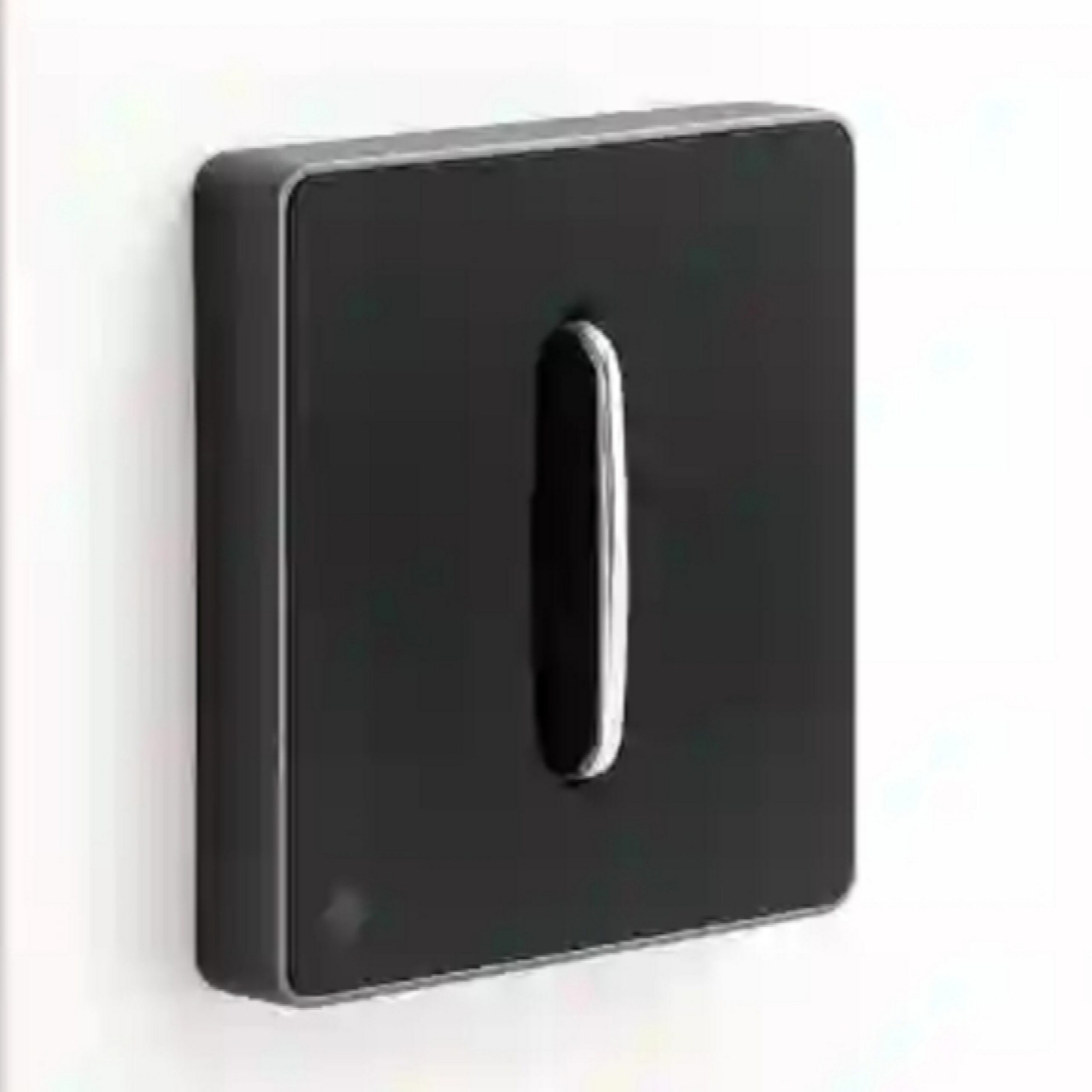 خانه کلید و پریز کلید تک پل آسیا الکتریک مدل یاقوت (قاب دور مشکی میانی نقره ای)